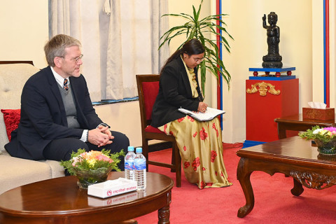 राष्ट्रपति रामचन्द्र पौडेलसँग नेपालका लागि संयुक्त राज्य अमेरिकाका राजदूत डीन आर थम्सनले आज राष्ट्रपति भवनमा बिदाइ भेट गरेका छन् ।