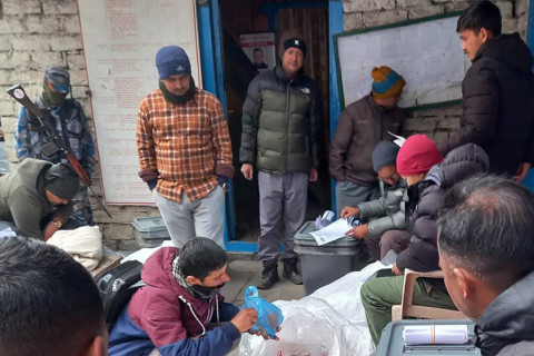 हिमालपारिको जिल्ला मनाङको सबैभन्दा दुर्गम नार्पाभूमि गाउँपालिकाका मतपेटिका हेलिकप्टबाट ल्याइएको छ।