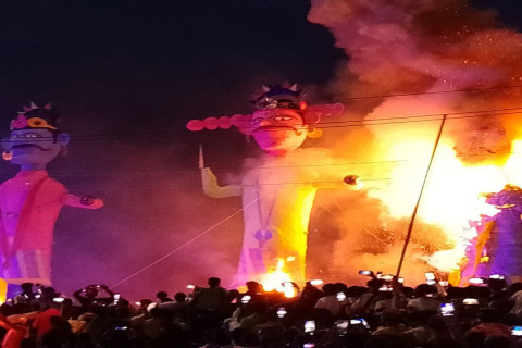 असत्यमाथि सत्यको विजयको प्रतीक शारदीय नवरात्राको क्रममा महोतरीको सदरमुकाम जलेश्वरमा बिहीबार विजया दशमीका दिन रावणका तीन वटा पुतला (प्रतिमा) दहन गरिएको छ।