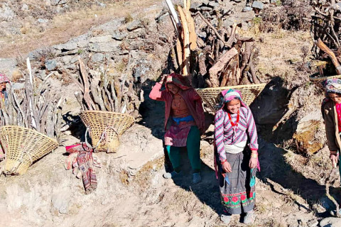 घरमा ६–८ महिनाका बालक चिसोले थर्किँदै बसिरहेका बेला उनकी आमाहरू जंगलमा दाउरा खोजिरहेको दृश्य-हिउँदको कठोर यथार्थ हो।