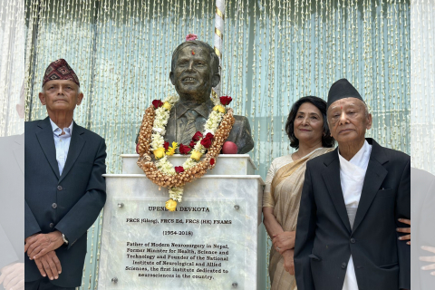 वरिष्ठ स्नायु शल्यचिकित्सक प्राडा उपेन्द्र देवकोटाको अर्धकदको प्रतिमा अनावरण गरिएको छ।