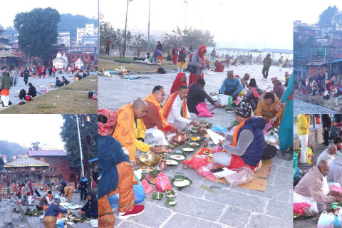 प्रत्येक वर्ष पौष कृष्ण औँसीका दिन गरिने दर्श एवं तीर्थ वा गया श्राद्ध गर्न शुक्रबार काठमाडौंको गोकर्णेश्वर नगरपालिका ४ स्थित गोकर्णेश्वर उत्तरगया तीर्थमा आएका भक्तजन।