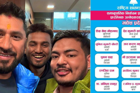 पार्टीले मधेश प्रदेश अन्तर्गतका उम्मेदवारको नाम सार्वजनिक गरेको हो। प्रवक्ता मनिष झाले जारी गरेको सूचीमा जेनजी अभियान्ता पुरुषोत्तम यादव पनि परेका छन्।