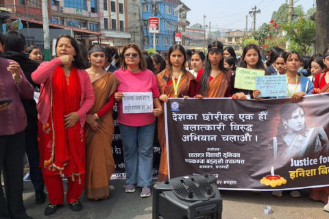 इनिशा विकको बलात्कारपछि हत्या भएको घटनामा न्याय माग गर्दै बागबजारस्थित पद्मकन्या कलेजका छात्राहरूले माइतीघरमा विरोध प्रर्दशन गरेका छन्।