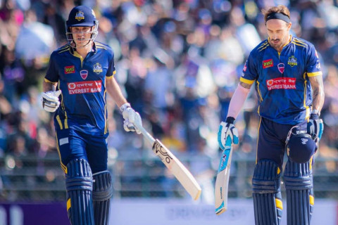 १५६ रनको लक्ष्य पछ्याएको विराटनगर किङ्सले इनिङ्सको पहिलो बलमै झड्का व्यहोरेको छ।