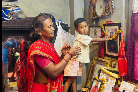 अमिरिका चौधरी केही बोल्न खोज्छिन् तर गला भरिएर आउँछ, शब्द निस्कँदैनन्। उनको काखमा छोरी छ, आँखामा टिलपिल आँसु र मोबाइलको उज्यालो पर्दामा मुस्कुराइरहेका विजय चौधरीको तस्बिर।