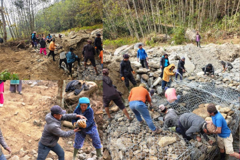 सडक सुचारु गर्न सरकारको मुख ताकेनन् : श्रमदानबाटै ग्यावियन जाली निर्माण