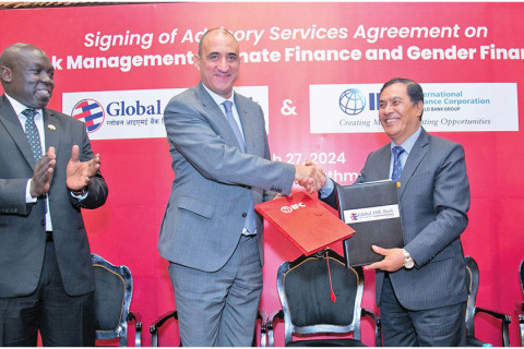 ग्लोबल आइएमई बैंक र विश्व बैंक समूहको सदस्य अन्तर्राष्ट्रिय वित्त निगम (आइएफसी) बीच जोखिम व्यवस्थापन, जलवायु तथा लैङ्गिक वित्त क्षेत्रमा आइएफसीद्वारा परामर्श सेवा प्रदान गर्ने सम्बन्धमा हस्ताक्षर भएको छ।