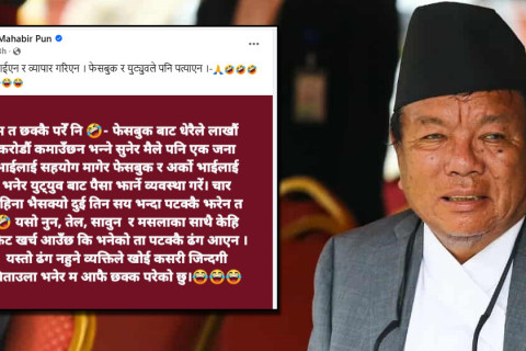 आफूले फेसबुकबाट लाखौँ–करोडौँ कमाई हुन्छ भन्ने सुनेर कमाउने व्यवस्था मिलाएको उनले अगाडि लेखेका छन्।