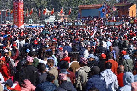 बिहानैदेखि विभिन्न जिल्लाबाट आएका नेता, महाधिवेशन प्रतिनिधि एवं कार्यकर्ताको भीड लागेको छ ।