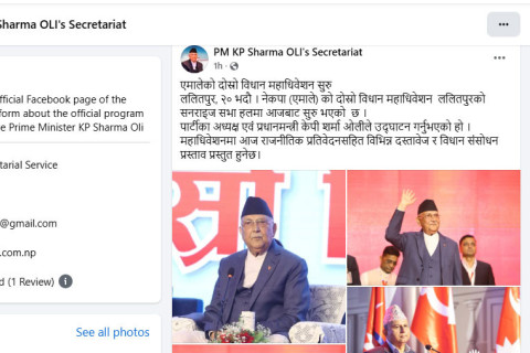 सबैतिर फेसबुक बन्दको चर्चा गर्दा एमालेको जारी विधान महाधिवेशनको उद्घाटन सत्रमा तस्बिरसहित प्रधानमन्त्रीको सचिवालयले आफ्नै नेतृत्वको सरकारले गरेको निर्णय कार्यान्वयलाई जिस्क्याएको छ ।