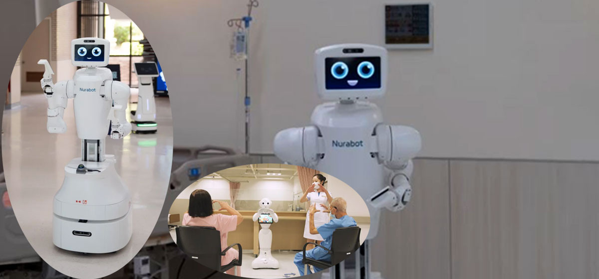 यो सन्दर्भमा एआई–सञ्चालित नर्सिङ रोबोट ‘नुराबोट’ले आशाको सञ्चार प्रवाह गरेको छ । बिरामीलाई औषधि पुर्याउने र वार्डमा बाटो देखाउने कार्य यी रोबोटले गर्ने गर्दछन् । नुराबोटको निर्माण गर्ने ताइवानको बहुराष्ट्रिय कम्पनी फक्सकनका अनुसार यस ह्युम्यान्वाईड रोबोटले नर्सको कामको बोझ ३० प्रतिशत सम्म घटाउन सक्छ ।