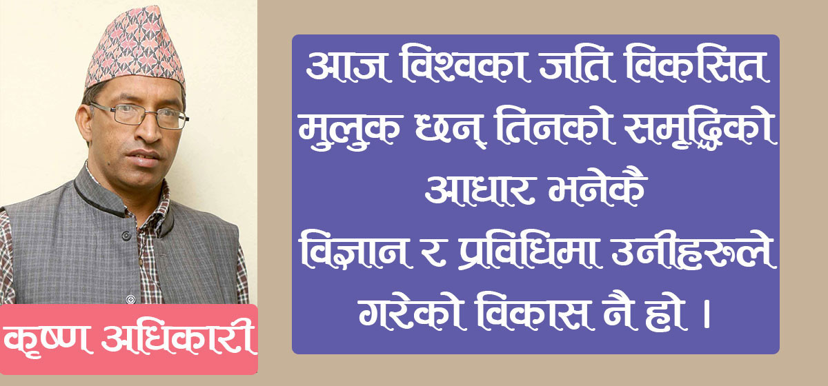 यसो भन्दैमा केही भएन, केही गर्न सकिनन भनने पनि होइन, संविधानमा उल्लेखित लक्ष्यलाई प्रविधिमार्फत छिटो कार्यान्वयन गर्ने अवसर, युवालाई अनुसन्धान र नवप्रवर्तनमा संलग्न गराउने सम्भावना पनि हामीसँग छ । एकातिर स्वदेशमै अवसर सिर्जना गरी युवा पलाउनलाई रोक्ने र अर्कोतिर विदेशमा पढेलेखेर, अनुसन्धान गरेर नाम र दाम कमाएका व्यक्तित्वलाई आकर्षित गरी नयाँ सोचका साथ राष्ट्र निर्माणमा सहभागी गराउन सकिएमा मुलुकलाई समृद्ध बनाउन समय लाग्दैन । विज्ञान र प्रविधिलाई सदुपयोग गर्न सक्दा देशको औद्योगिक विकास हुन गई धेरैलाई रोजगार दिन सकिन्छ, युवा वर्गको उचित व्यवस्थापन हुन सक्छ र समुन्नत नेपाल बनाउने दिशामा अघि बढ्न सकिन्छ ।