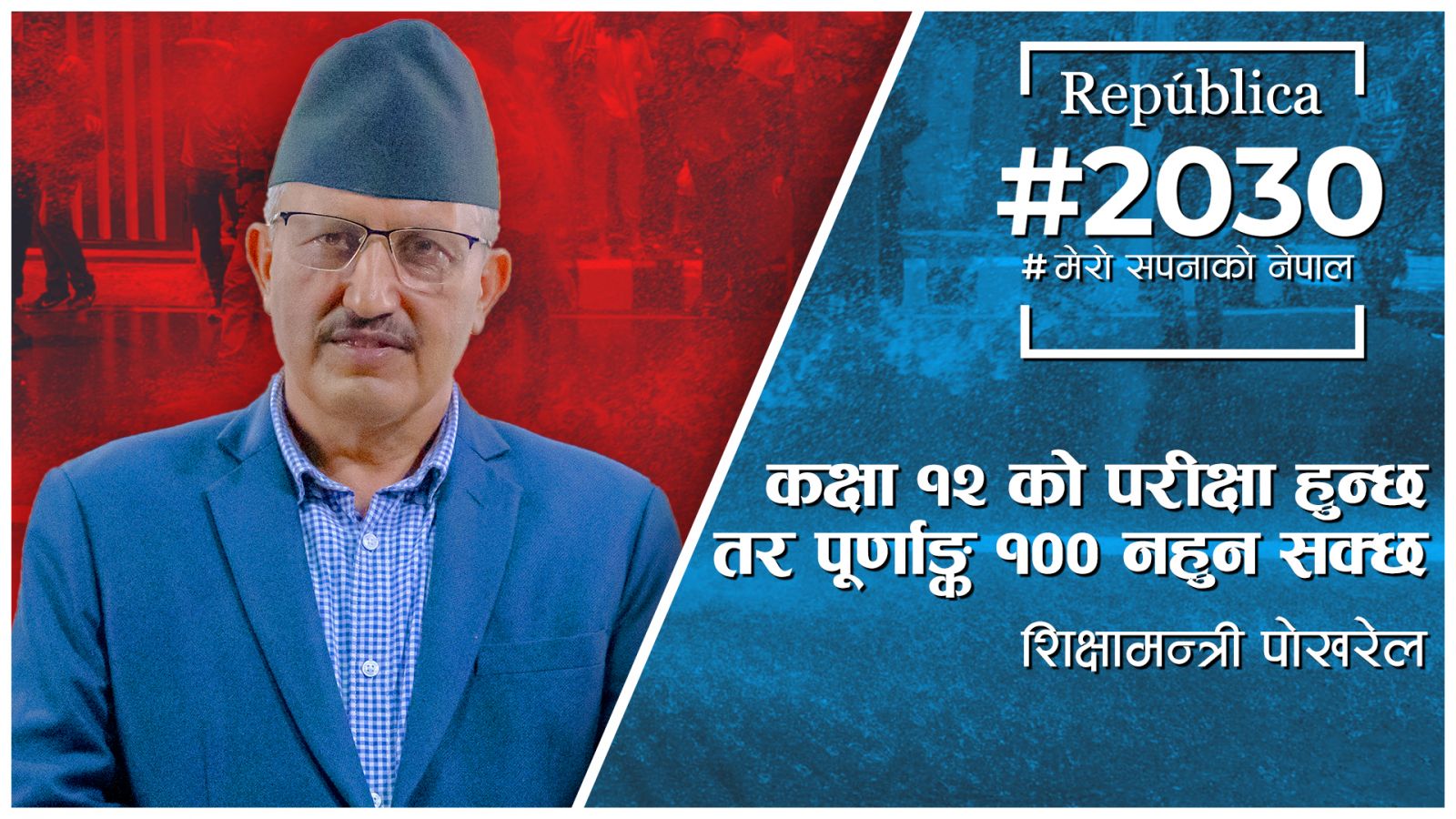शिक्षा विज्ञान तथा प्रविधिमन्त्री गिरिराजमणी पोखरेलले कक्षा १२ को परीक्षाको तयारी भइरहेको बताएका छन्। नेपाल रिपव्लिक मिडियाको साप्ताहिक कार्यक्रम #2030 मा बोल्दै उनले कक्षा १२ को परीक्षा हुने बताए।