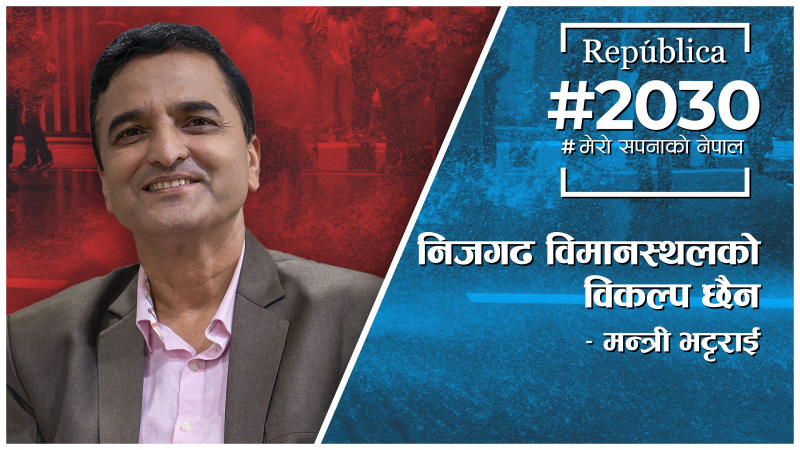 संस्कृति पर्यटन तथा नागरिक उड्डयन मन्त्री योगेश भट्टराईलेनिजगढ विमानस्थलको विकल्प नभएको बताएका छन्। नेपाल रिपव्लिक मिडियाको साप्ताहिक कार्यक्रम#2030मा उनले अब त्रिभुवन अन्तराष्ट्रिय विमानस्थलले मात्रै भार धान्न नसक्ने बताए। उनले अन्तर्वार्ताको क्रममा पर्यटनको विषयमा पनि खुलेक कुरा गरे।