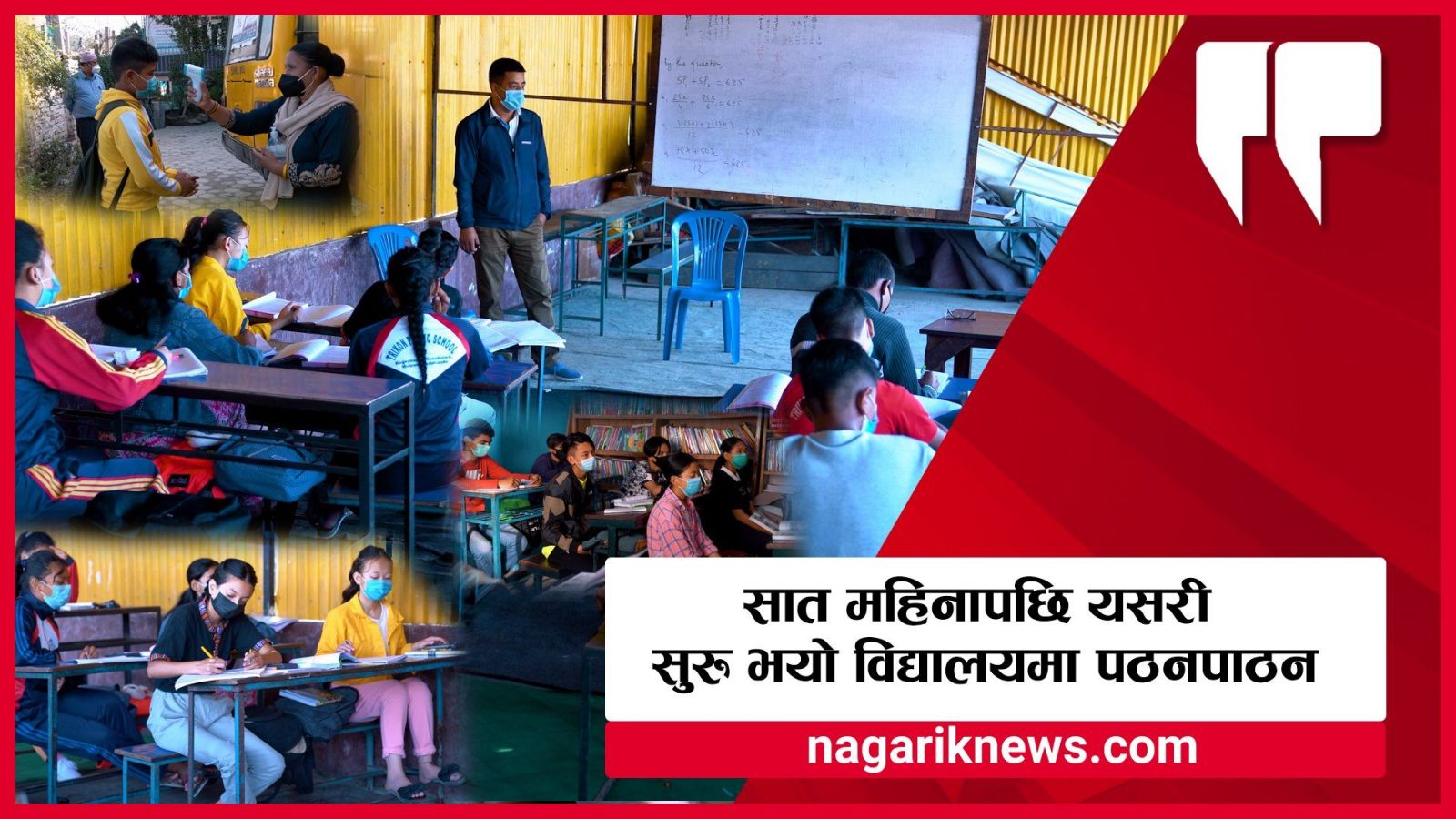 कोरोना महामारीका कारण ७ महिनादेखि बन्द काठमाडौंको कागेश्वरी मनोहरा–६, मूलपानीस्थिति विद्यामठ आवासीय विद्यालयमा पठनपाठन सुरु गरिएको छ। भौतिक दूरी कायम गर्दै सातामा ३ दिन विद्यालय सञ्चालन गर्ने गरिएको हो।