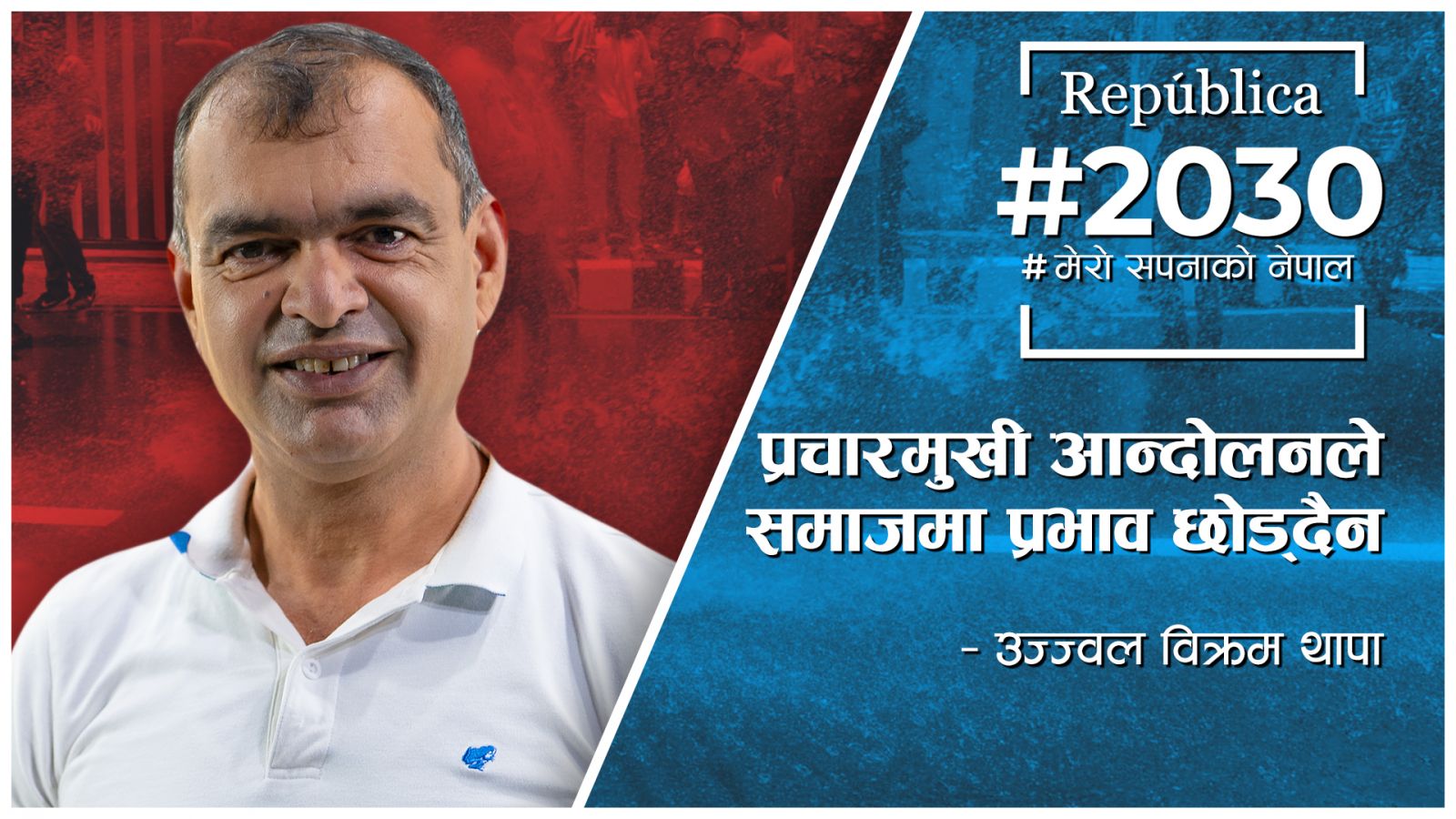 सामाजिक अभियन्ता उज्ज्वल विक्रम थापाले प्रचारमुखी आन्दोलनले समाजमा कुनै प्रभाव नपार्ने बताएका छन्। नागरिक नेटवर्कको साप्ताहिक कार्यक्रम #2020 मा उनले समस्या पहिचान गरेर त्यसको दिर्घकालिन समाधानका लागि लाग्नु पर्ने बताए।