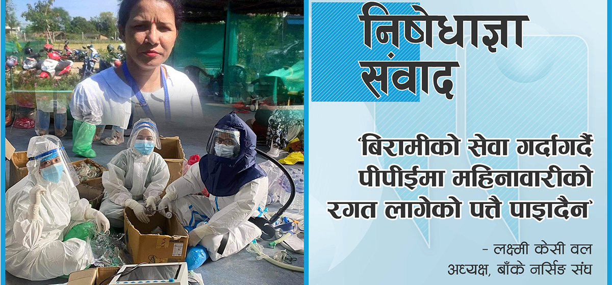 एक त सहनै नसक्ने गर्मी, त्यसमाथि सबैतीरबाट सील भएको पीपीई लगाउनु पर्दा मरुभूमिमा बसे सरहको अनुभव यहाँका कोभिड वार्डमा खटिएका नर्सहरुको छ। बिरामीको सेवामा खटिरहने उनीहरुले कतिपय समयमा त सेतो पीपीईमा रातो रगत लागेको समेत पत्तै पाउँदैनन्।